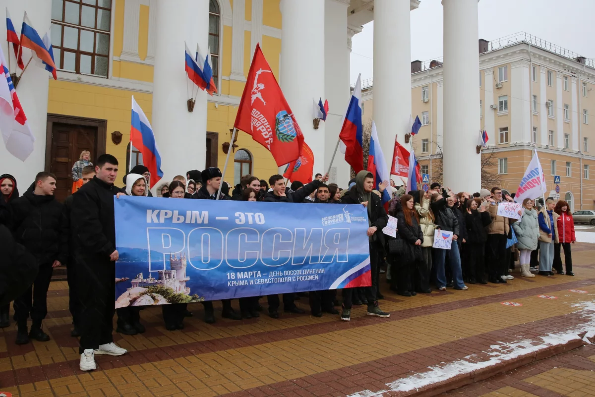 Отметить годовщину «Крымской весны» на Театральной площади собрались студенты калужских ВУЗов, училищ и колледжей, члены и сторонники партии «Единая Россия», представители «Молодой гвардии» и волонтерских организаций. Участие в митинге приняли Глава городского самоуправления Калуги Юрий Моисеев и депутат Гордумы Андрей Голубев.