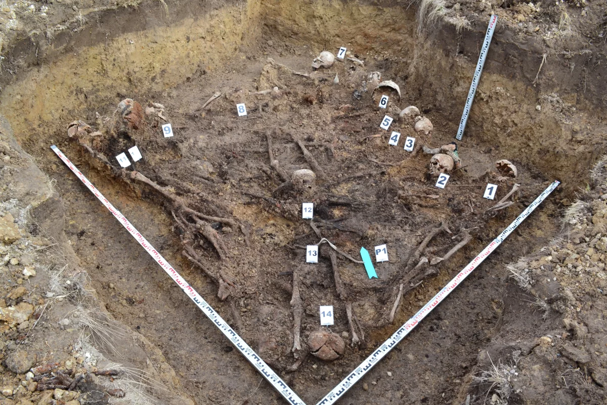 Сверху располагались останки 14 бойцов, которые перекрывали останки еще семи человек.