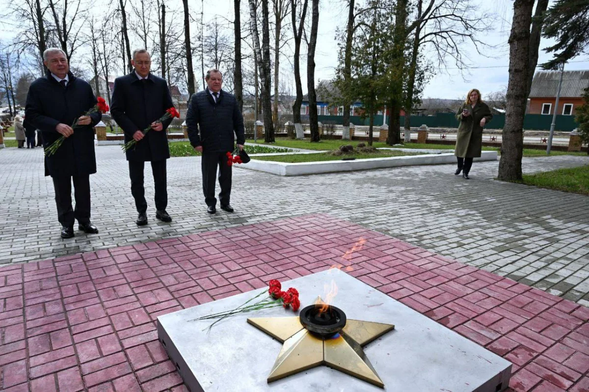 Они возложили цветы к Вечному огню на мемориальном комплексе в Хвастовичах. Там захоронено больше 4000 воинов, погибших в годы Великой Отечественной войны.