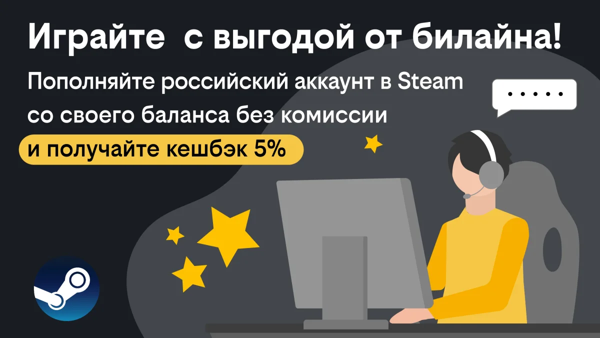 Играй с выгодой: билайн дарит кешбэк за пополнение кошелька в Steam с баланса телефона