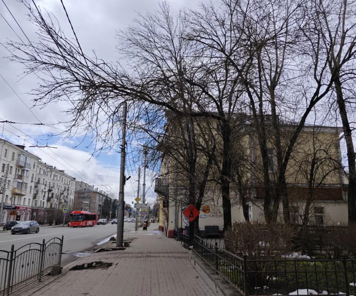Дерево сломалось и повисло на проводах в районе дома №62 на улице Ленина.