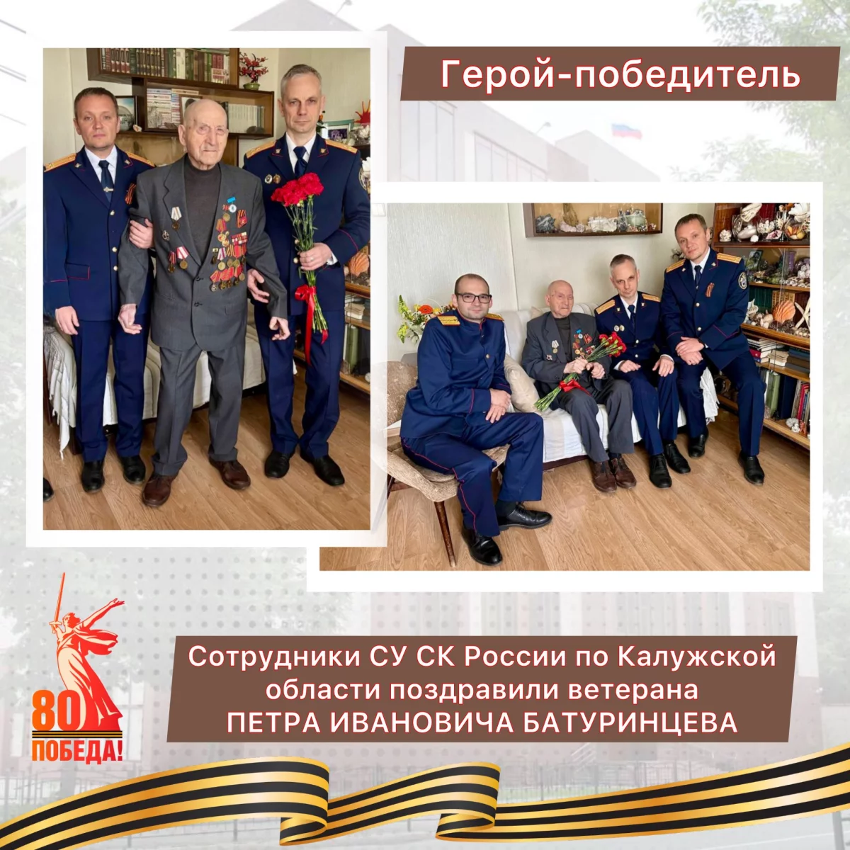В Калужской области сотрудники СК поздравили ветерана Великой Отечественной войны с юбилеем Победы