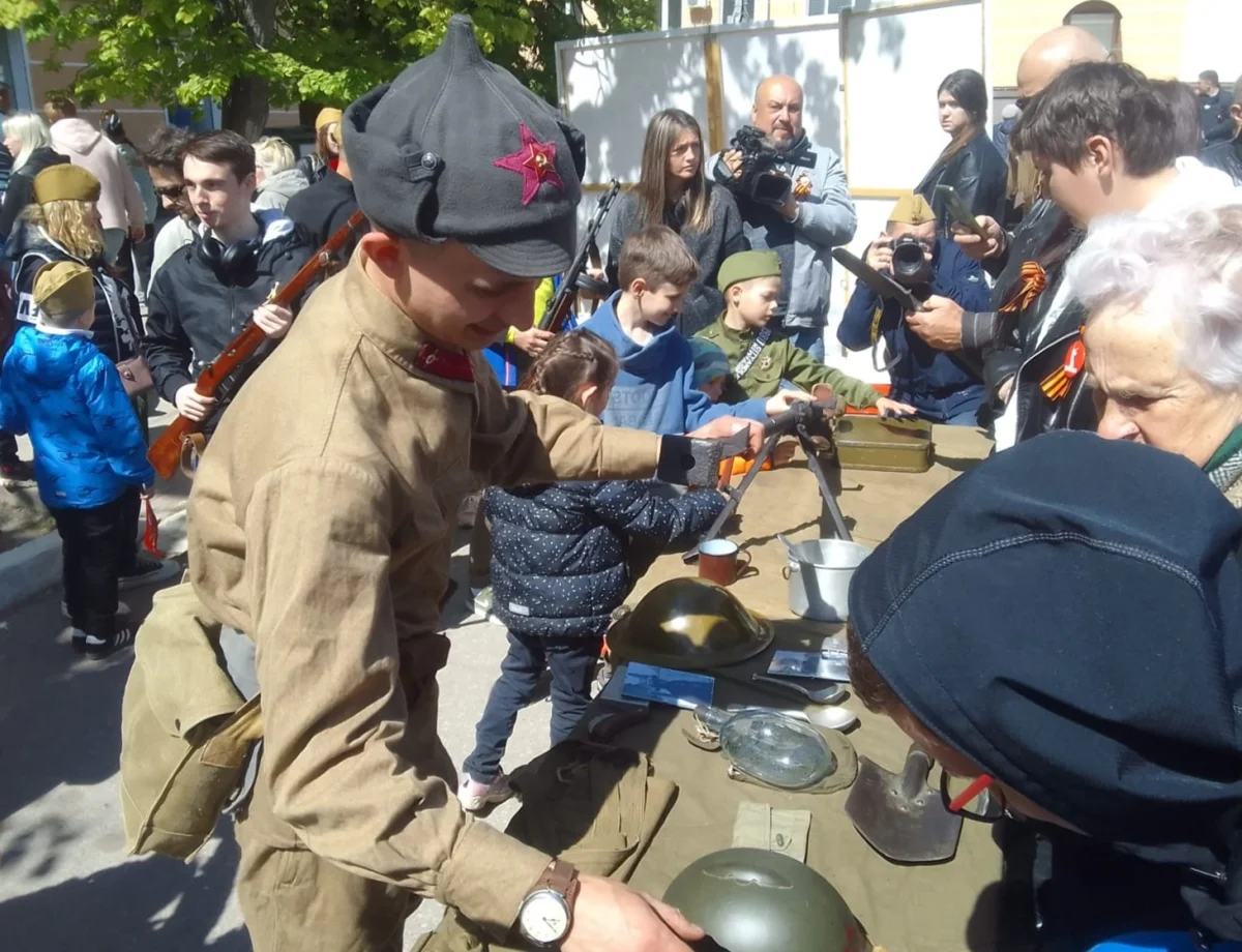 Также работала уличная экспозиция с военными артефактами, а для детей провели тематические викторины и игры.