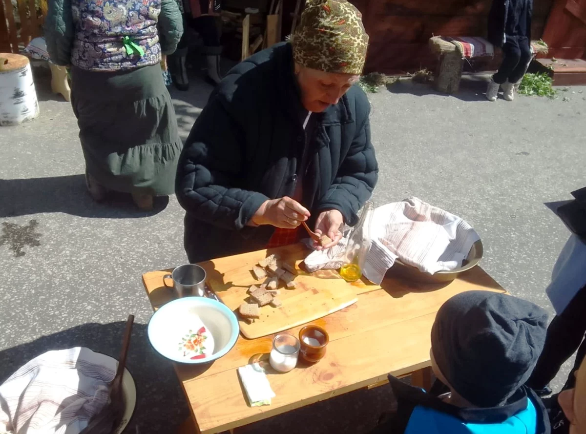 Особый интерес вызвала локация с фронтовым угощением — черным хлебом с солью и подсолнечным маслом.