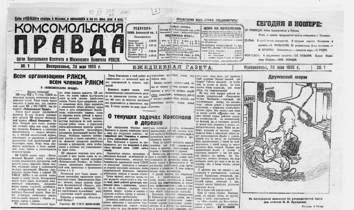 Ровно 100 лет назад вышел первый номер газеты "Комсомольская правда"