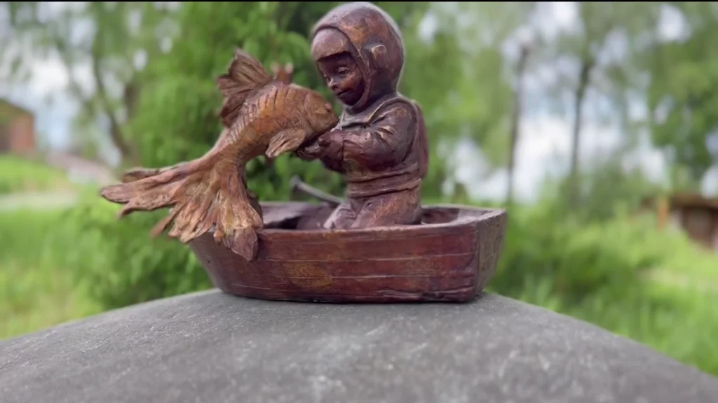 Космонавтика с золотой рыбкой в лодке изготовила скульптор Алина Фарниева.