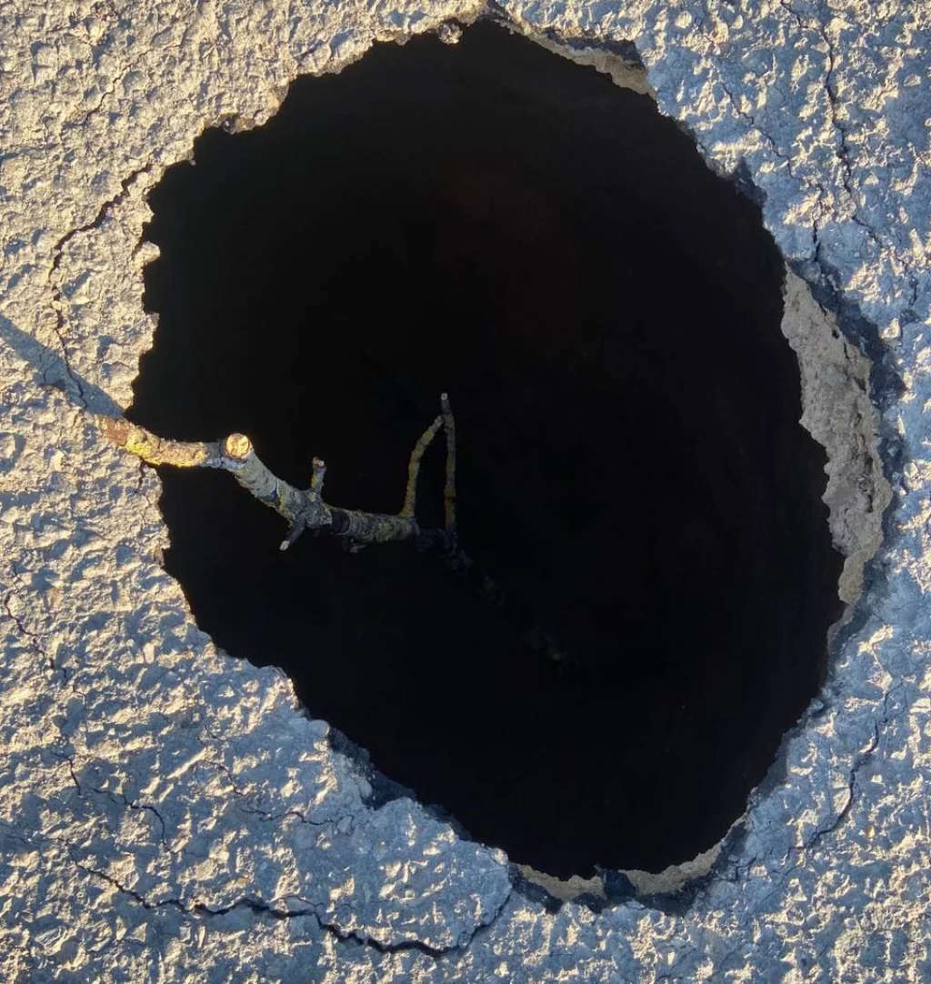 Она сообщила, что после недавнего ремонта, во время которого яму засыпали песком, дорожное полотно снова разрушилось.