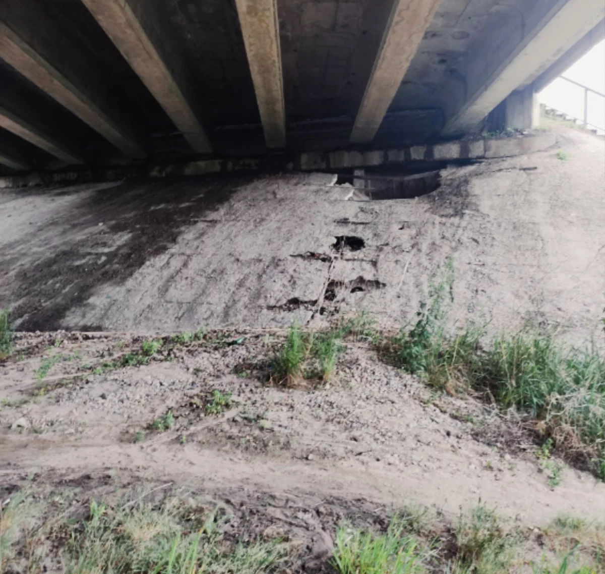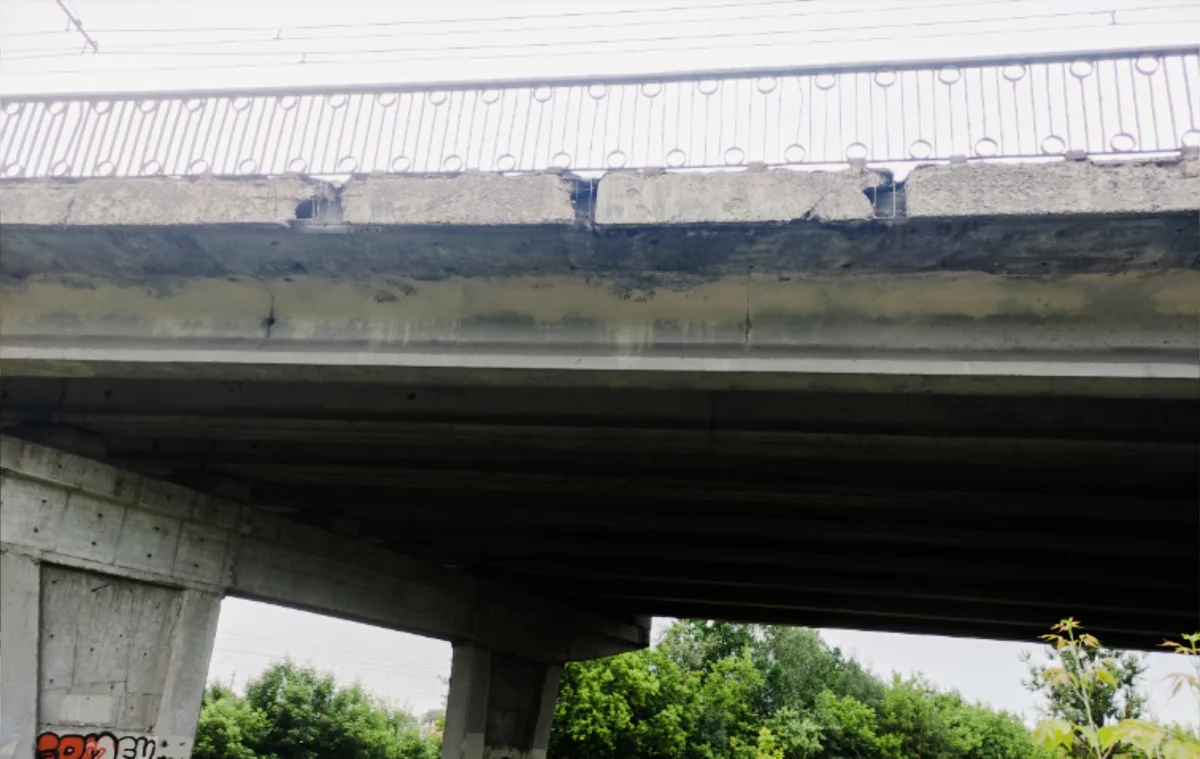 - Падают куски бетона на проезжую часть и на ж/д пути. Провалы и трещины всё больше. Тут и диверсанты без надобности. Рухнет сам на людей, машины, электричку, - комментирует ситуацию мужчина.