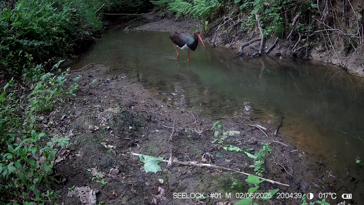 - Он буквально ни на шаг не выходит их видимости камеры и методично ищет и пытается поймать добычу в речке, - прокомментировали в заповеднике. - Кажется, что чёрный аист делает это всё совершенно обдуманно, что у него разработана тактика и он действует строго по плану.