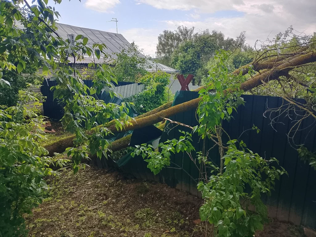 Дерево, росшее за забором его участка по улице Чистые ключи, во время непогоды упало прямо во двор дома, повредив забор и детскую площадку.
