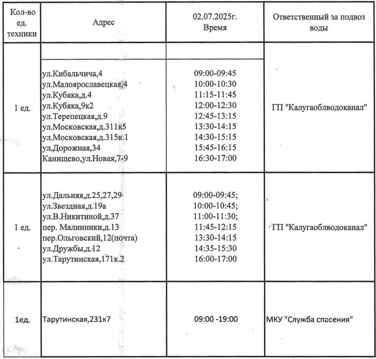 2 июля жителям Калуги следует подготовиться к временным перебоям с водоснабжением.