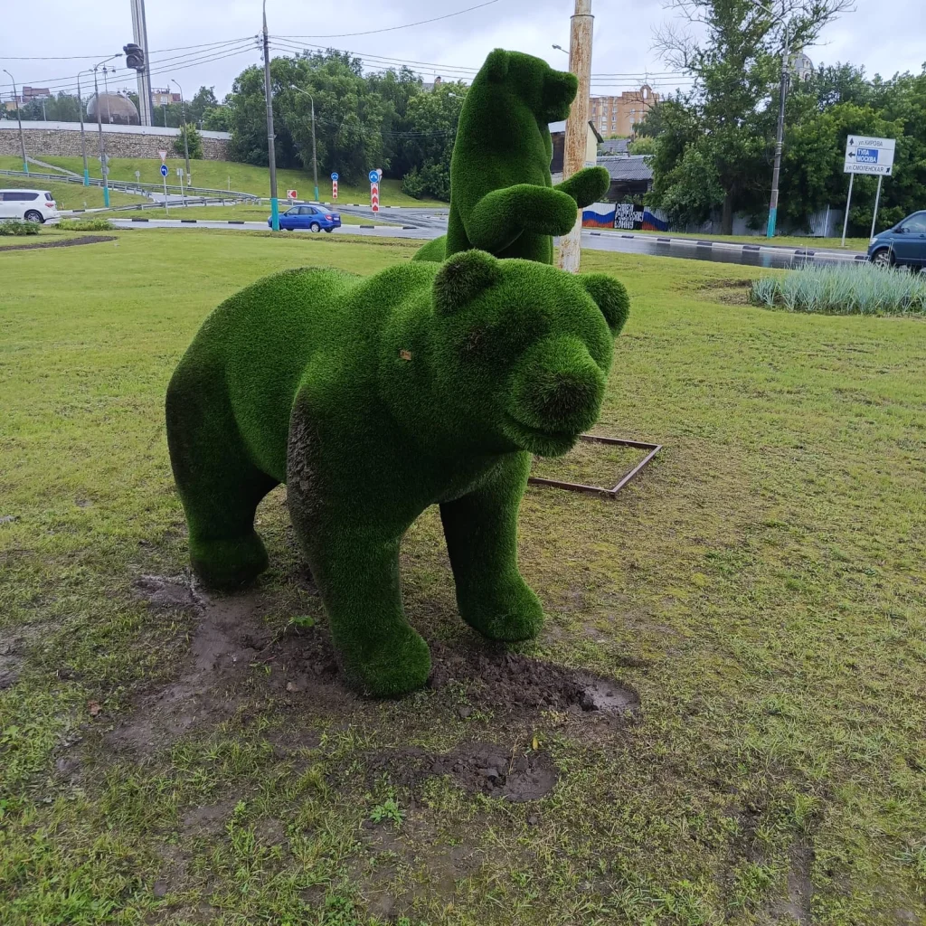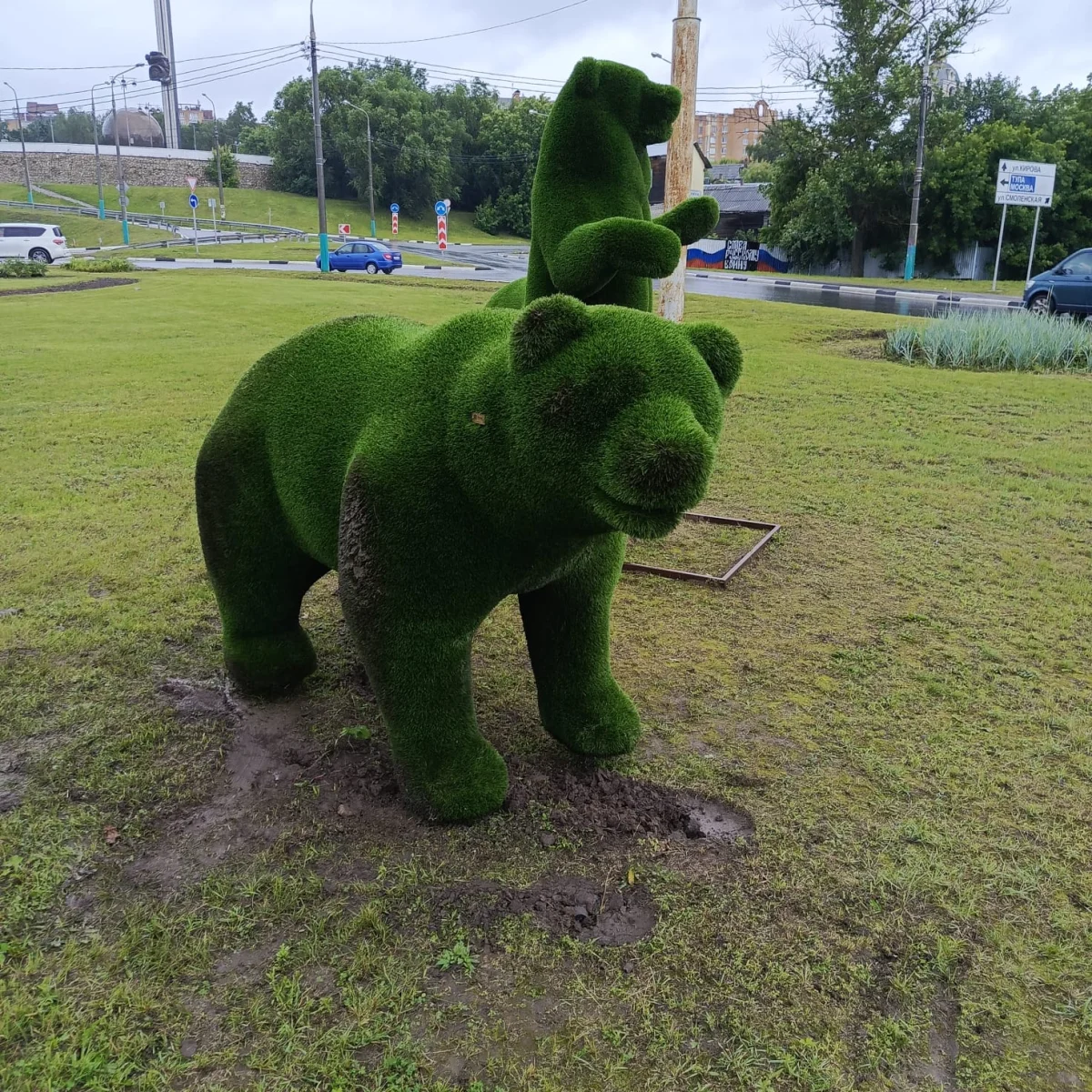 После нашего обращения в горуправу одну из трех фигур медведей, которые много лет украшают Гагаринский мост, вернули в вертикальное положение.