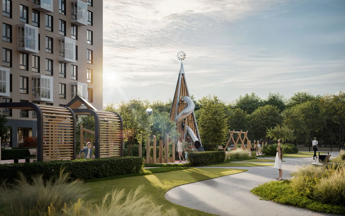 Понимая, что пространство для детских игр должно быть не только интересным, но и развивающим, застройщик подключил к созданию комфортной среды психологов. Детские площадки здесь созданы с учетом возрастных особенностей. Применяются принципы нейродинамики, которые способствуют не только физическому, но и когнитивному развитию ребенка. Все игровые комплексы безопасны — от материалов до конструктивных решений.