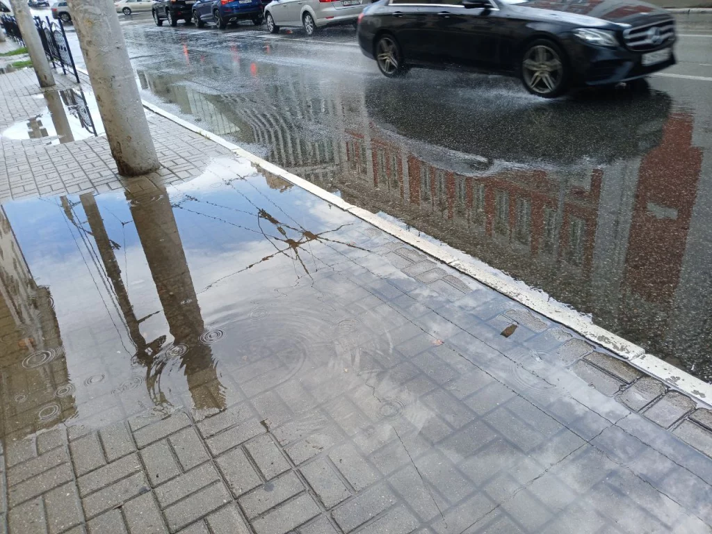 Но тротуарах скопились большие лужи.