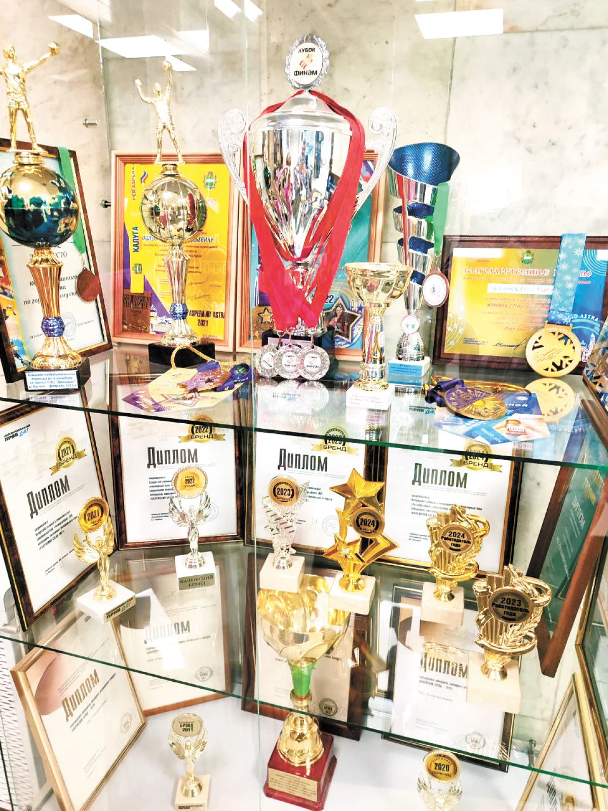 В холле головного офиса на Плеханова, 4, размещены витрины с многочисленными благодарностями и кубками.