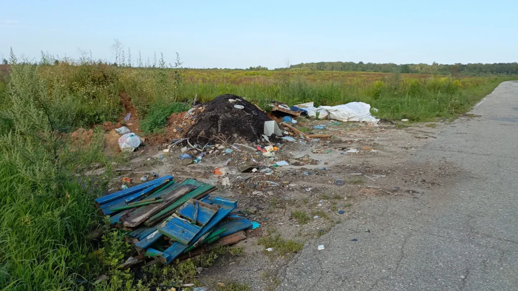 В Калуге на дороге у деревни Пучково разбросали отходы