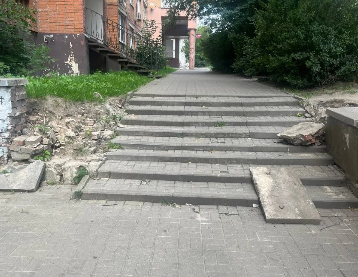 - Спуск к скверу Волкова по ул. Гагарина, д. 11. Состояние ужасное. А зимой присыпет, и переломаем ноги. Обратите, пожалуйста, внимание на этот участок, - написала она.