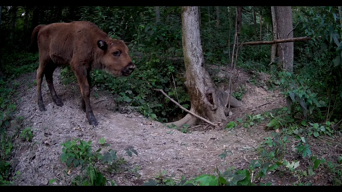 Смуглый зубр попал на видео в калужском лесу