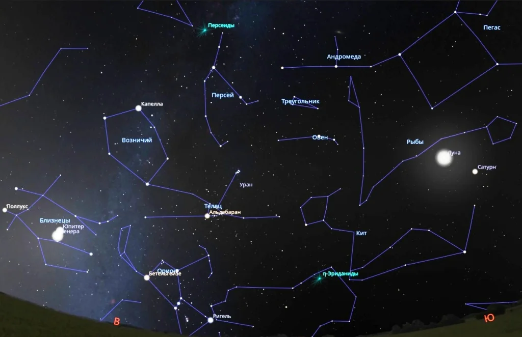 Особенностью этого года станет редкое астрономическое совпадение: помимо метеоров, на небе можно будет увидеть сближение Луны с Сатурном (4 градуса) и Венеры с Юпитером (всего 1 градус). Наблюдать Луну и Сатурн можно после 22:00, а Венеру и Юпитер – ближе к 3 часам ночи.