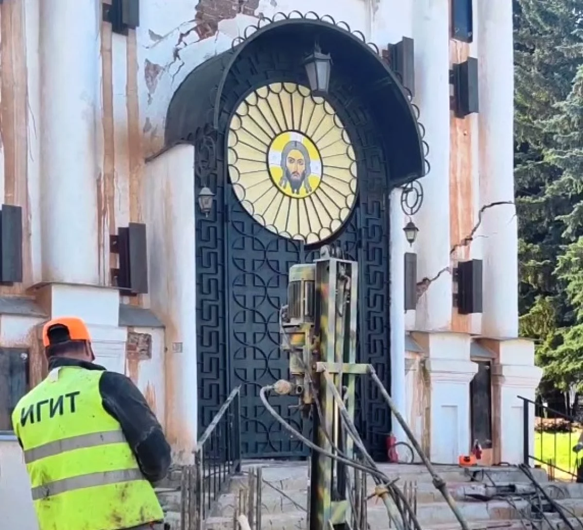 Особое внимание уделяют фундаменту. Строители смонтировали 34 сваи глубиной почти 8 метров, чтобы заполнить пустоты и укрепить основание храма. Для аккуратной работы через старый фундамент бурят алмазными коронками.