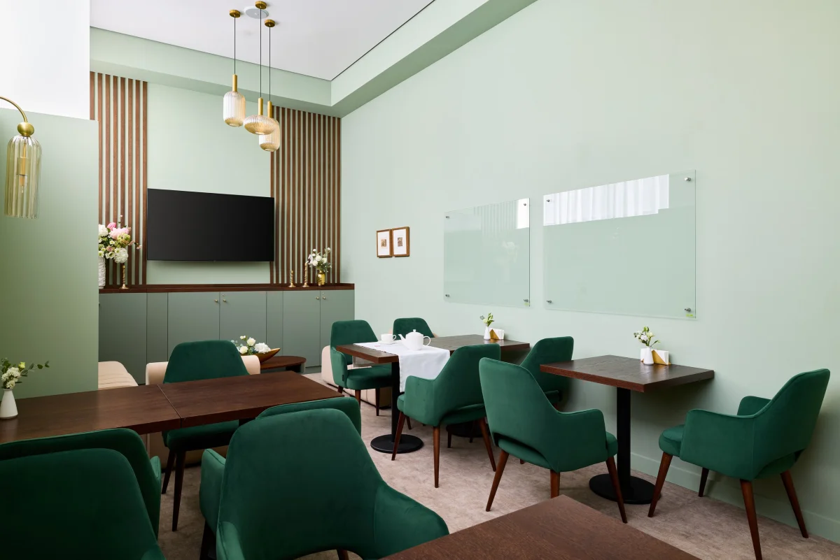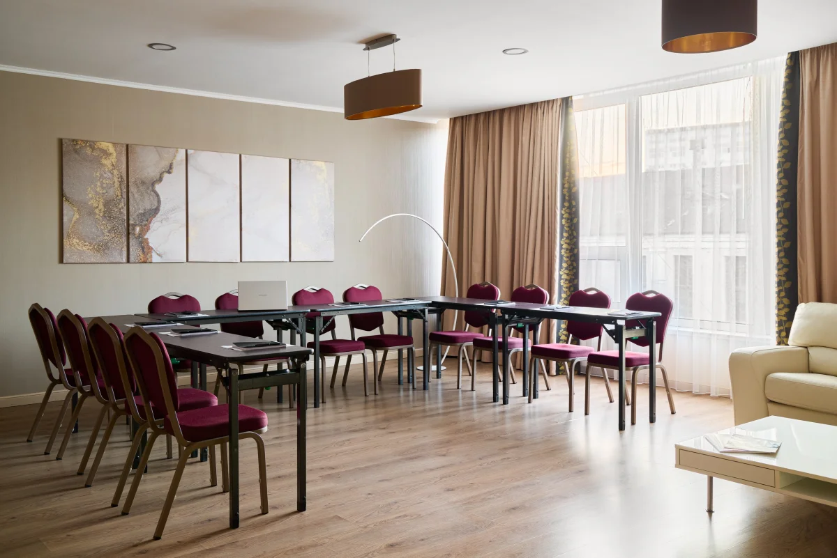 В 2024 году осуществилась реновация конференц-залов отеля. Они объединены второй главной темой истории города – космической. Уютный небольшой бизнес-центр с компьютерами и переговорной зоной поможет гостю оперативно решать рабочие вопросы.
