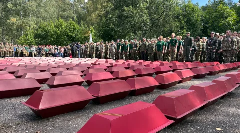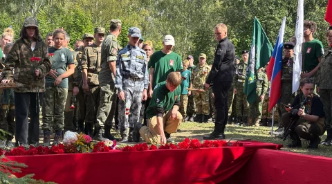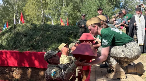 В Барятинском районе Международная военно-историческая экспедиция «Западный фронт. Варшавское шоссе» провела церемонию захоронения останков советских воинов.