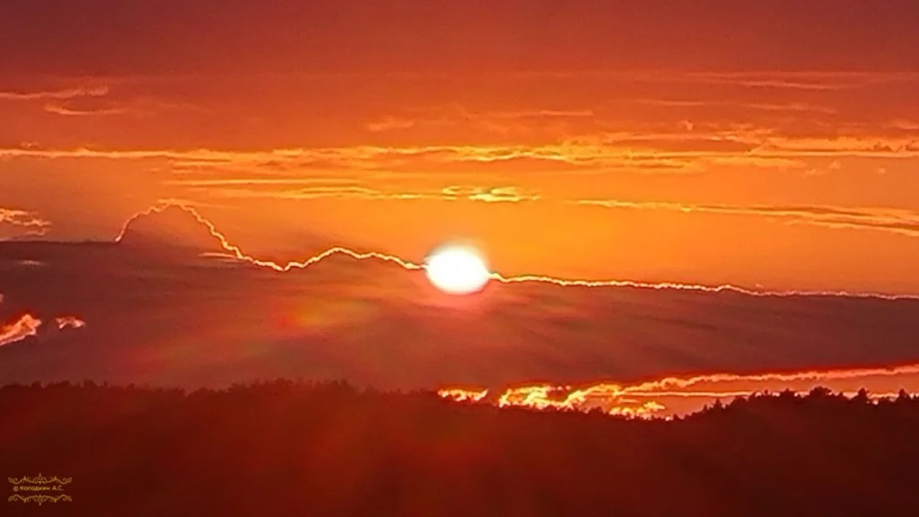 Александр смог поймать момент, когда солнце над Угрой в Юхновском районе окрасило небо в золотисто-оранжевые и кроваво-красные оттенки.