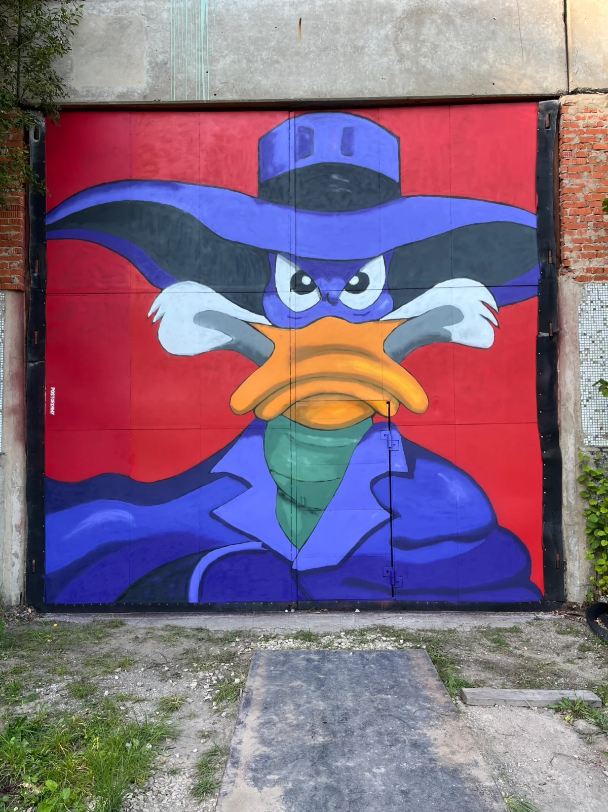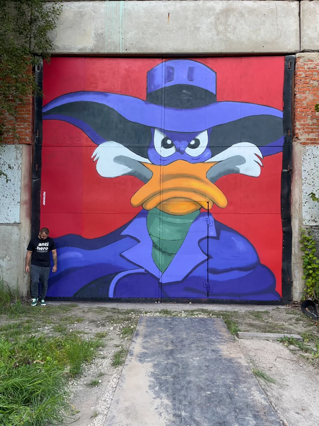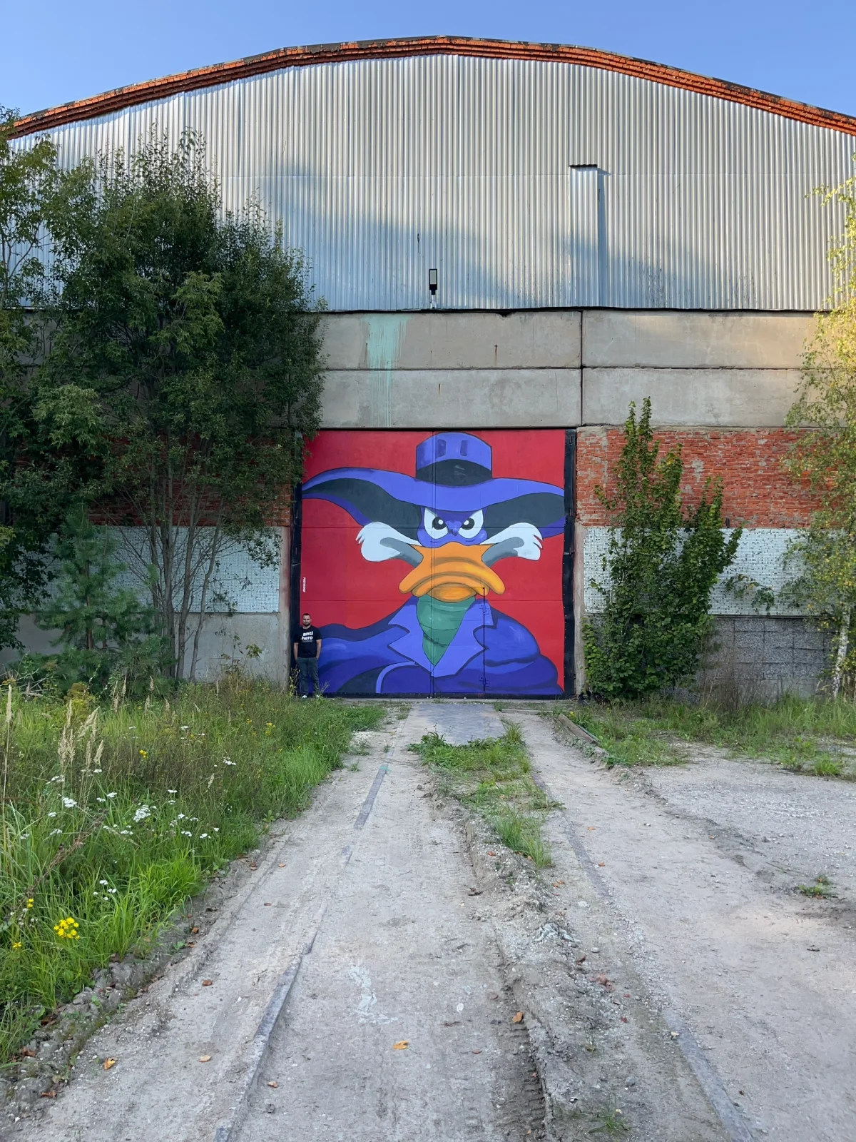 На воротах ангара в Кондрово его нарисовал боровский художник Postoronny.