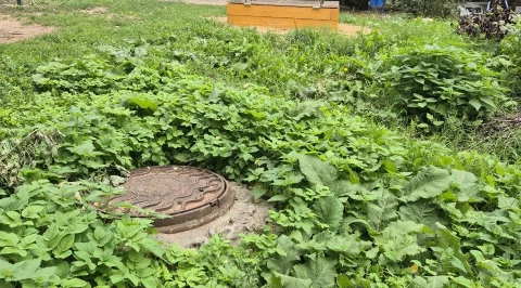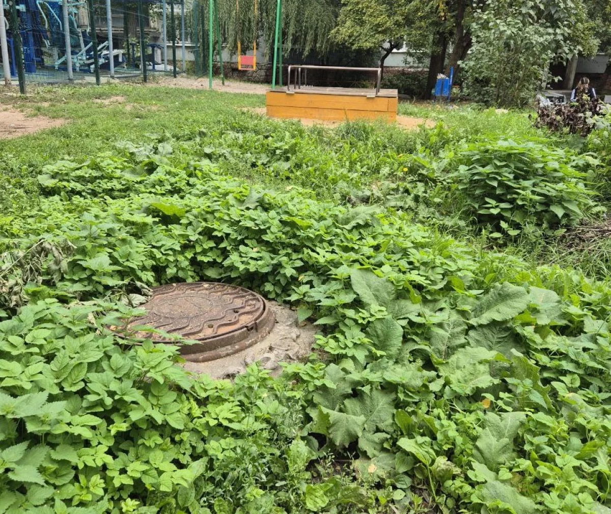 В Калуге во дворе на Никитина дети играют посреди зарослей