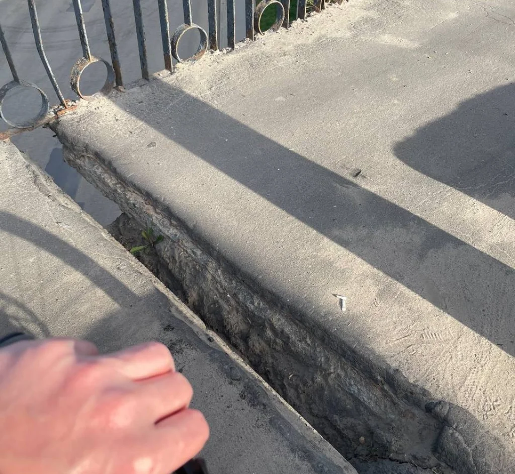 - Владислав Валерьевич, здравствуйте. Пешеходная часть моста по улице Московской от мкр. Кубяка до Азарово в плачевном состоянии. Прошу Вас принять меры для восстановления безопасного покрытия, - написал Никита.