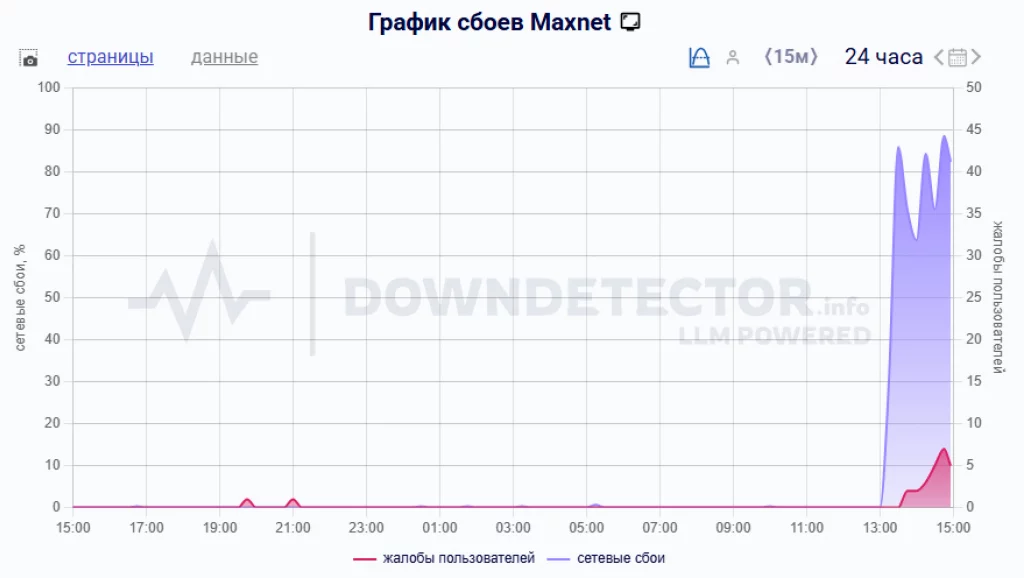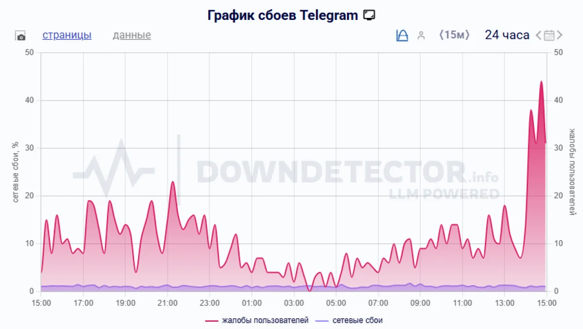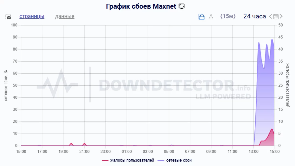 По данным фиксирующего сбои в интернете сервиса Downdetector, проблемы наблюдаются с 13:15.