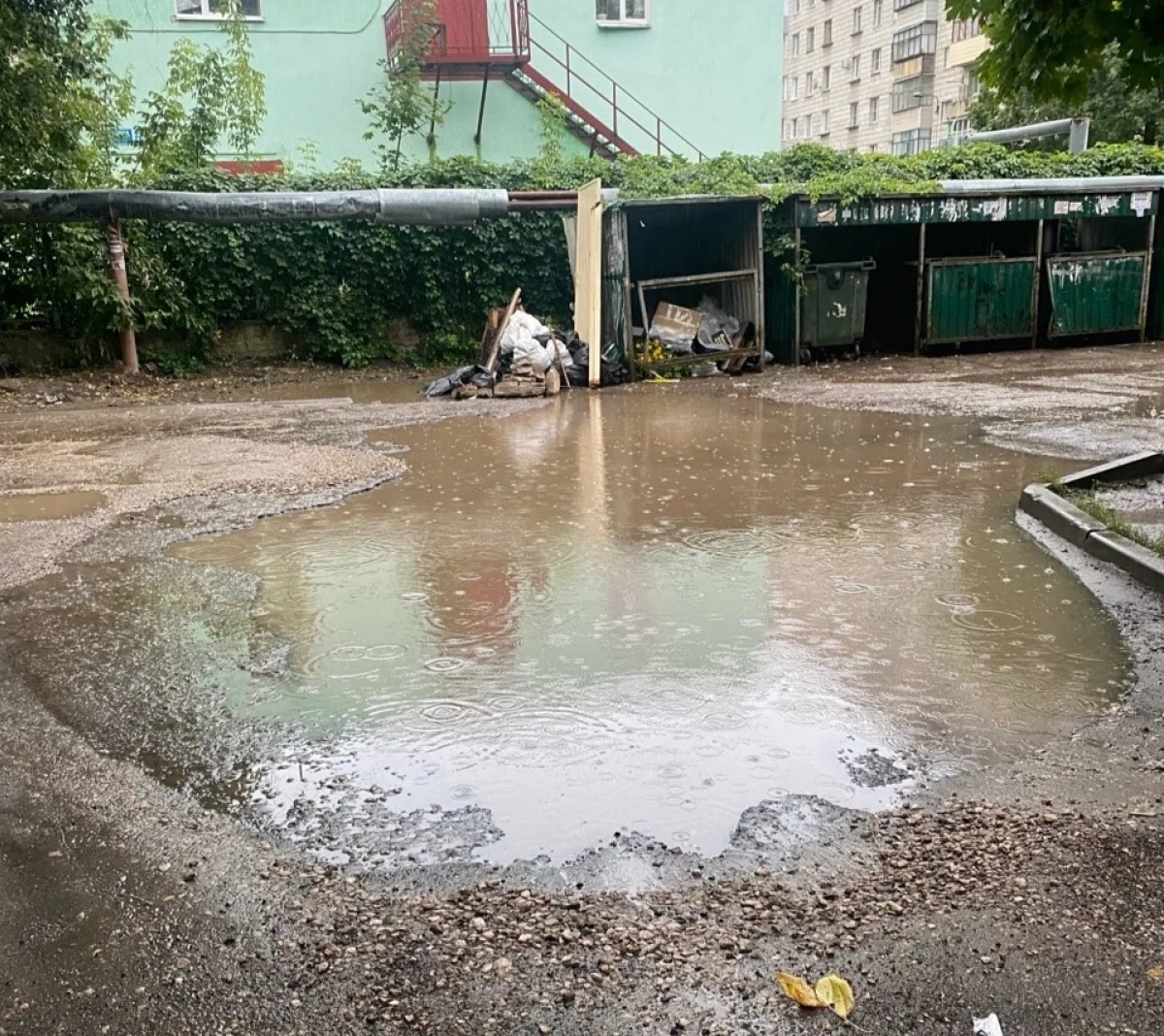 В Калуге после каждого дождя у дома на Чижевского образуется озеро