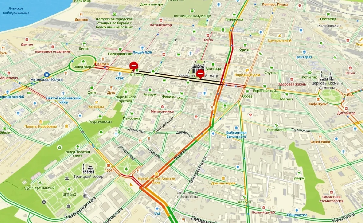 Дорожные затруднения затронули улицу Кирова и Сквер Мира, где непосредственно проходят соревнования. Пробки растянулись и на прилегающих улицах, в частности, движение затруднено на Московской вплоть до площади Старый Торг.