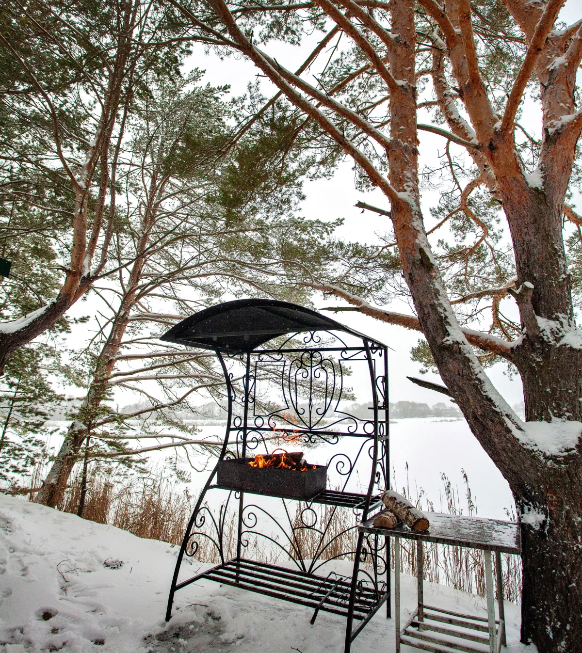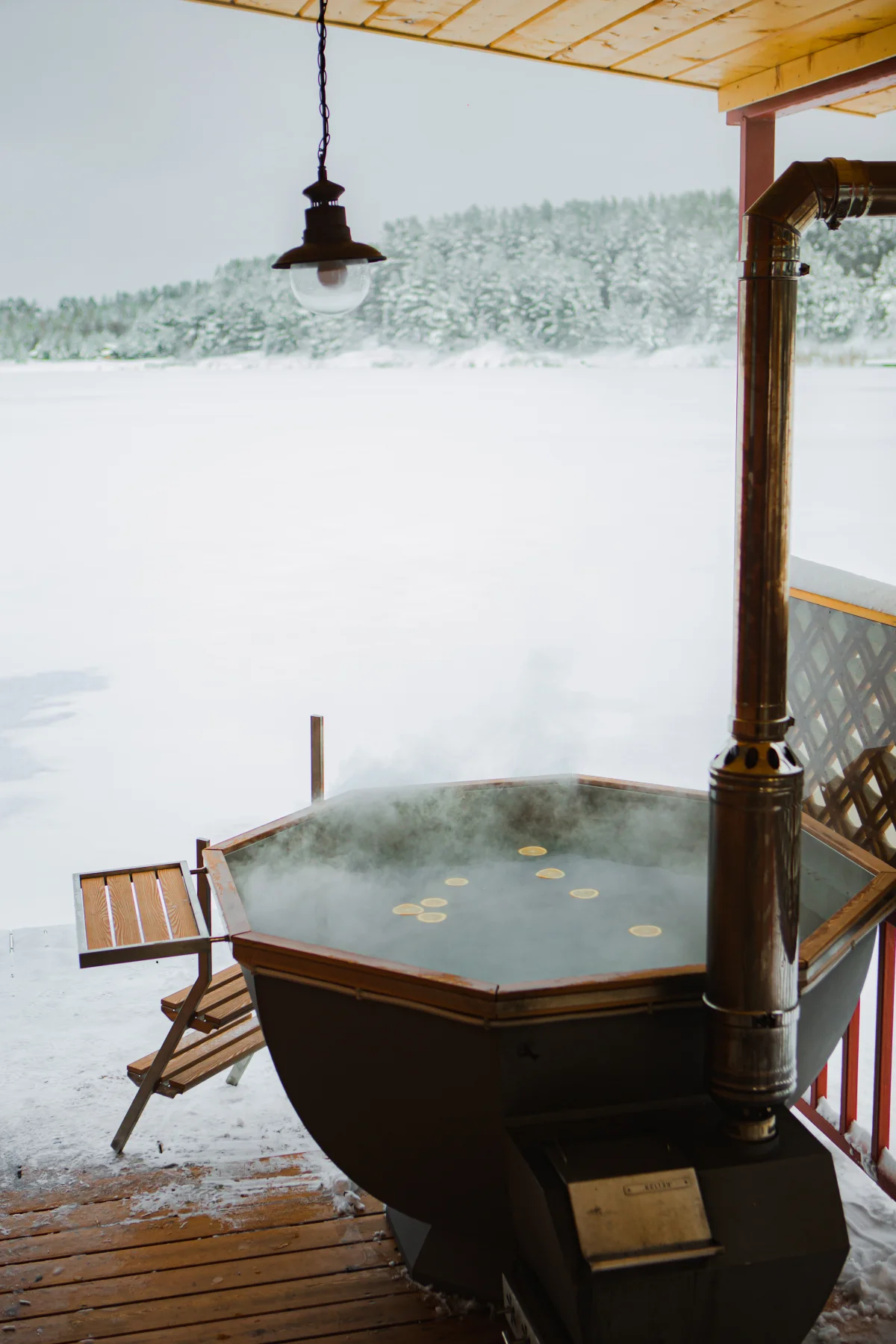 Для гостей, ценящих традиционные ритуалы отдыха, работает «Добрая банька» — место, где можно расслабиться после прогулок по зимнему лесу. Также доступен сибирский чан с подогревом воды: он размещен так, чтобы обеспечить прекрасный вид на озеро.