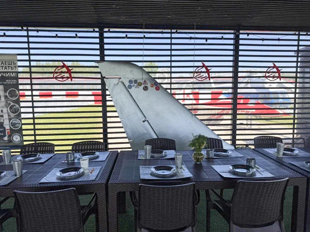 На территории работает вертолет-кафе, где можно перекусить хот-догами или фирменной «кашей на форсаже». Парк работает без сезонных перерывов — зимой полеты даже более активны: холодный, плотный воздух идеален для работы реактивной техники.