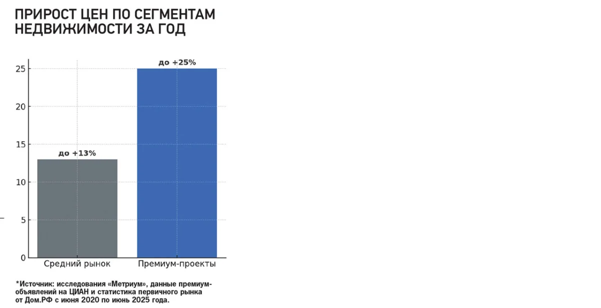 *Источник: исследования «Метриум», данные премиум-объявлений на ЦИАН и статистика первичного рынка от Дом.РФ с июня 2020 по июнь 2025 года.
