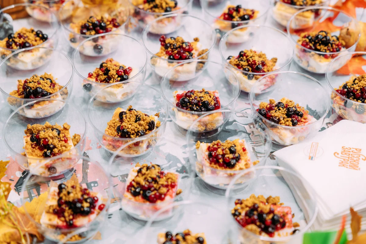 Повара удивили гостей, показав, что традиционный русский завтрак хорошо смотрится и в современной подаче: сметанные шапочки на творожных запеканках и сырниках были красиво дополнены капельками варенья и россыпью свежих ягод, а ярко украшенный молочный кисель с медовыми коврижками выглядывал из аккуратных порционных тарелочек, а маринованные огурчики вместо деревянной кадки аппетитно выглядывали из большой тыквы.