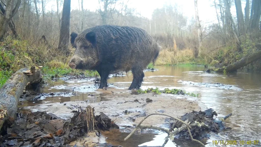 Запись с фотоловушки утром в понедельник опубликовал заповедник «Калужские засеки».