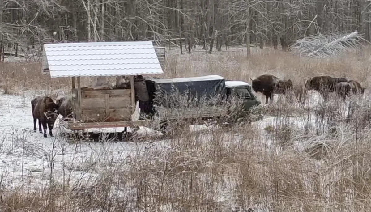 - Первую партию зимних кормов заложили на одну из подкормочных площадок заповедника, - прокомментировали 16 декабря в заповеднике. - Больше всего наших инспекторов охраны ждали, конечно, зубры. Они сразу же пришли, коллеги ещё даже не успели уехать с площадки!