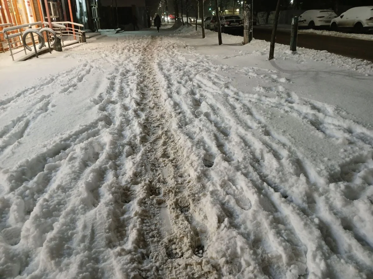 В центральной части города по состоянию на 8 утра дороги были расчищены, но на тротуарах не везде удавалось пройти. Снежные отвалы мешают пешеходам на переходах и остановках.