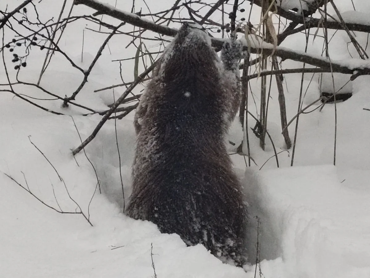 - Видимо, бобр решил, что зима — не повод отменять жизнь, и исполняет свои бобриные планы и в снег, и в стужу.