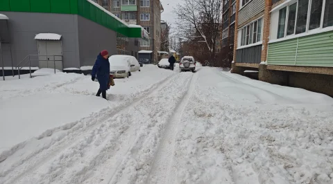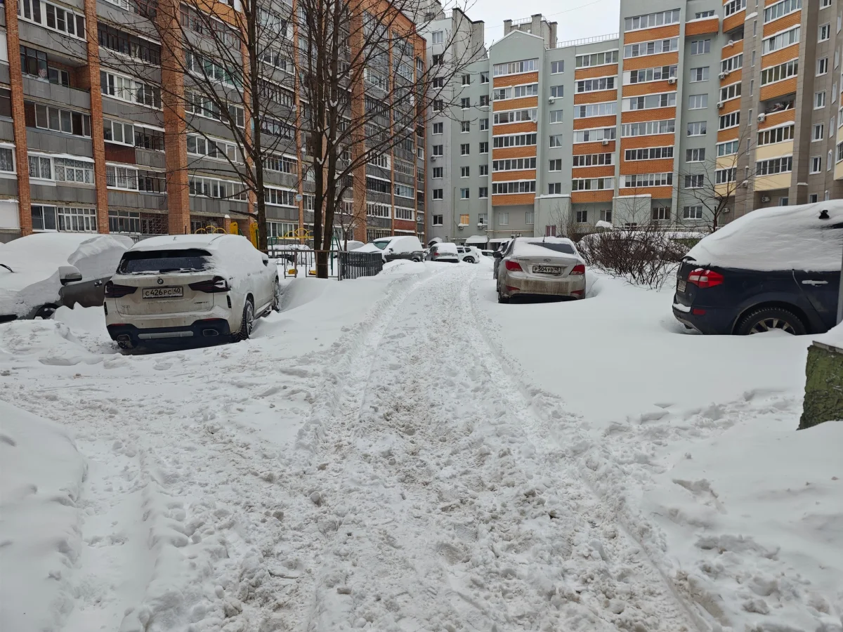 Дворы многих домов в районе площади Московской засыпаны снегом. Их почистить не успели и калужане живут с этим сами, как могут.