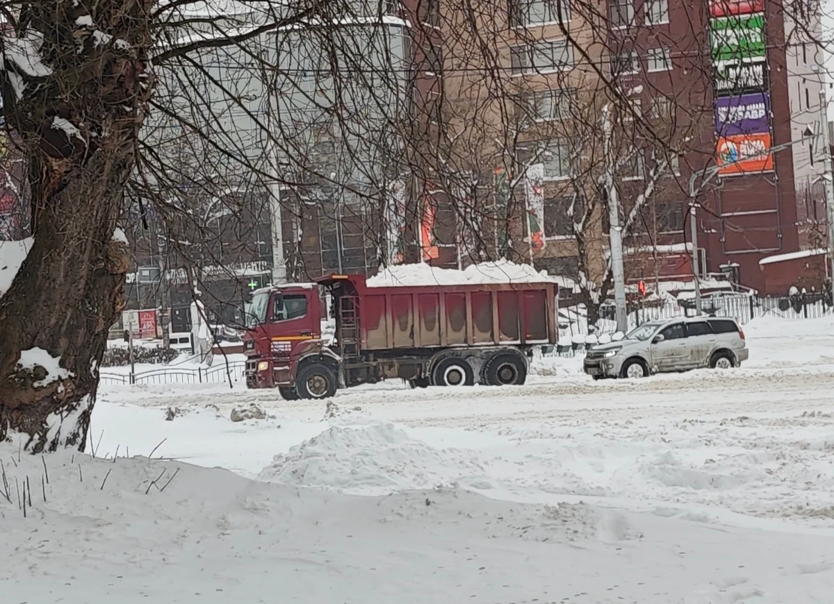 Были на улицах города замечены нами и грузовики со снегом, которые двигались в сторону снегоплавильного завода.