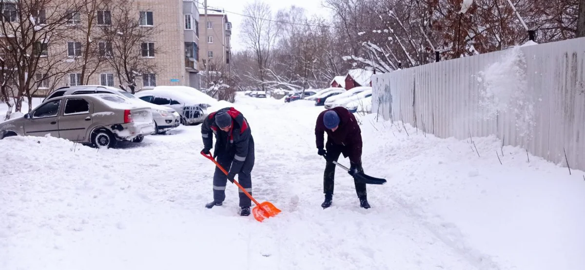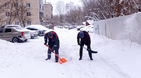 Жители домов 236 и 238 по улице Московской вышли на утреннюю разминку с лопатами.