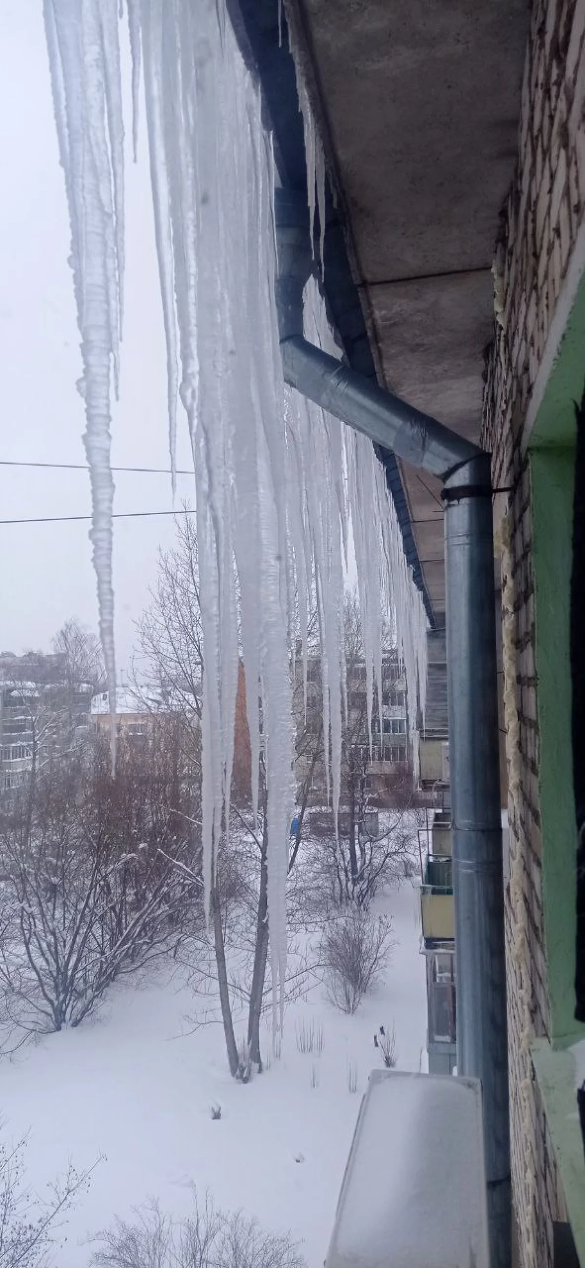 Метровые сосульки наросли на доме по ул. Московской, 238