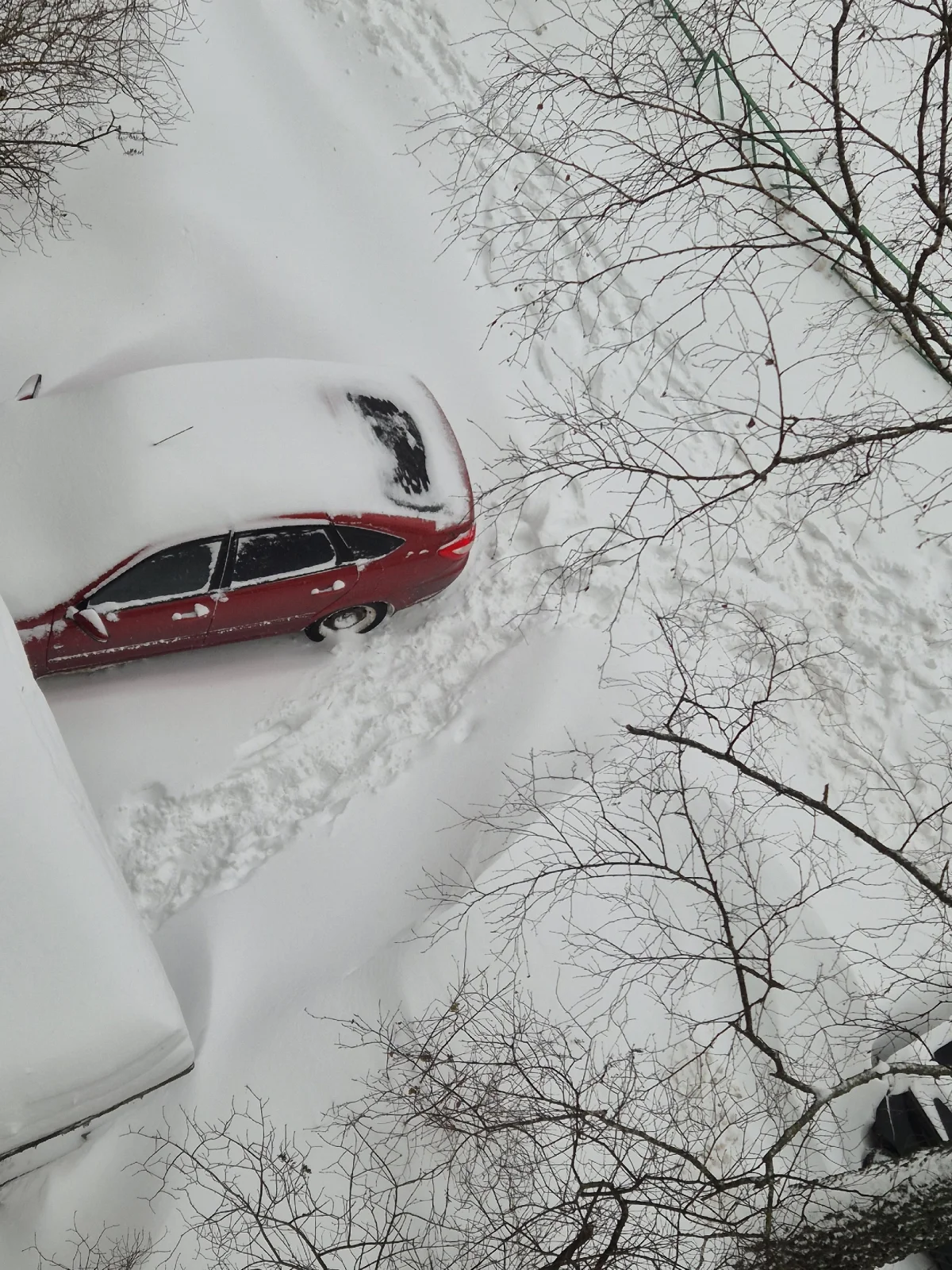 А другие, не менее добрые, решили никуда не ехать и оставили своих железных коней во дворах прикидываться сугробами.