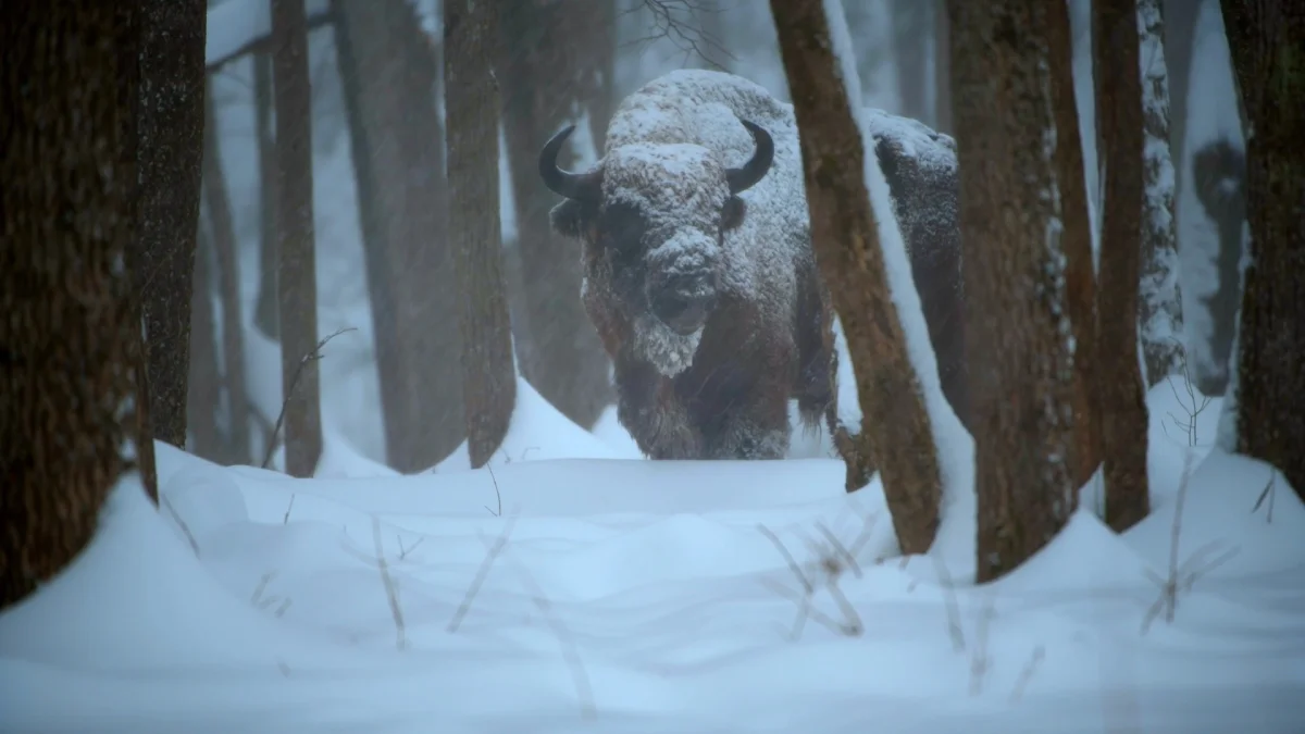 Зубра под снегом засняли в калужском лесу