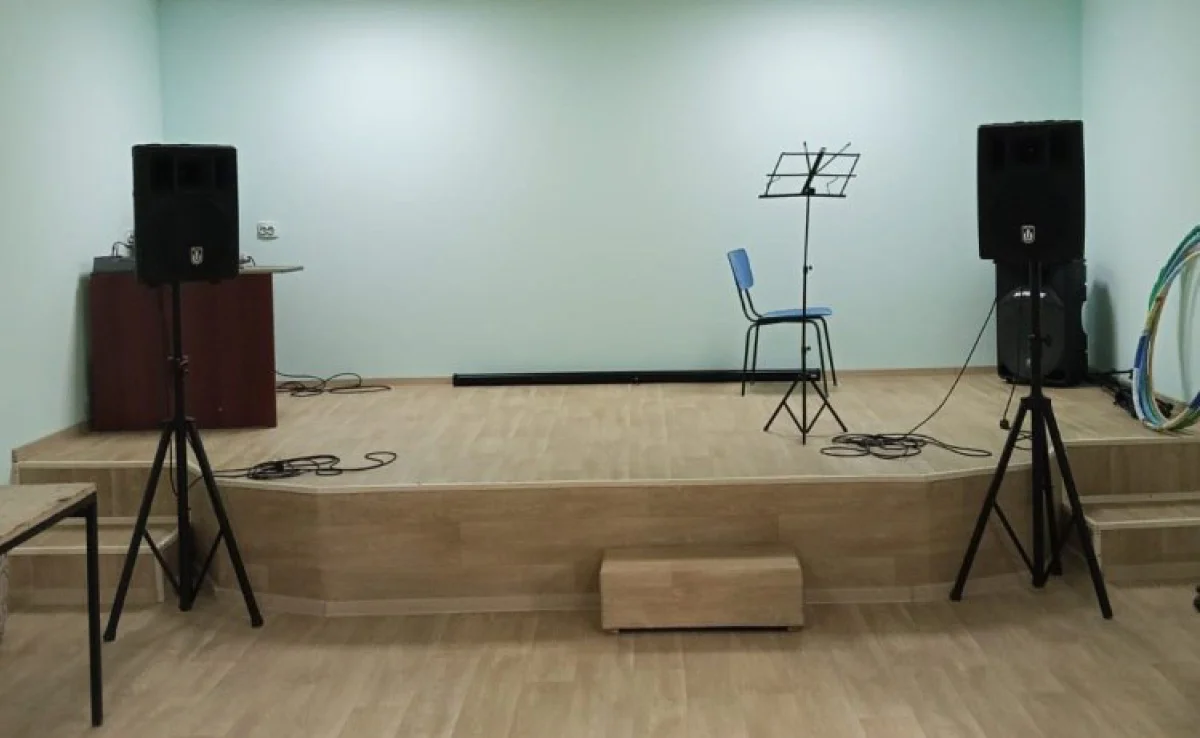 Выполнен ремонт актового зала, сцены, коридора и комнаты отдыха.