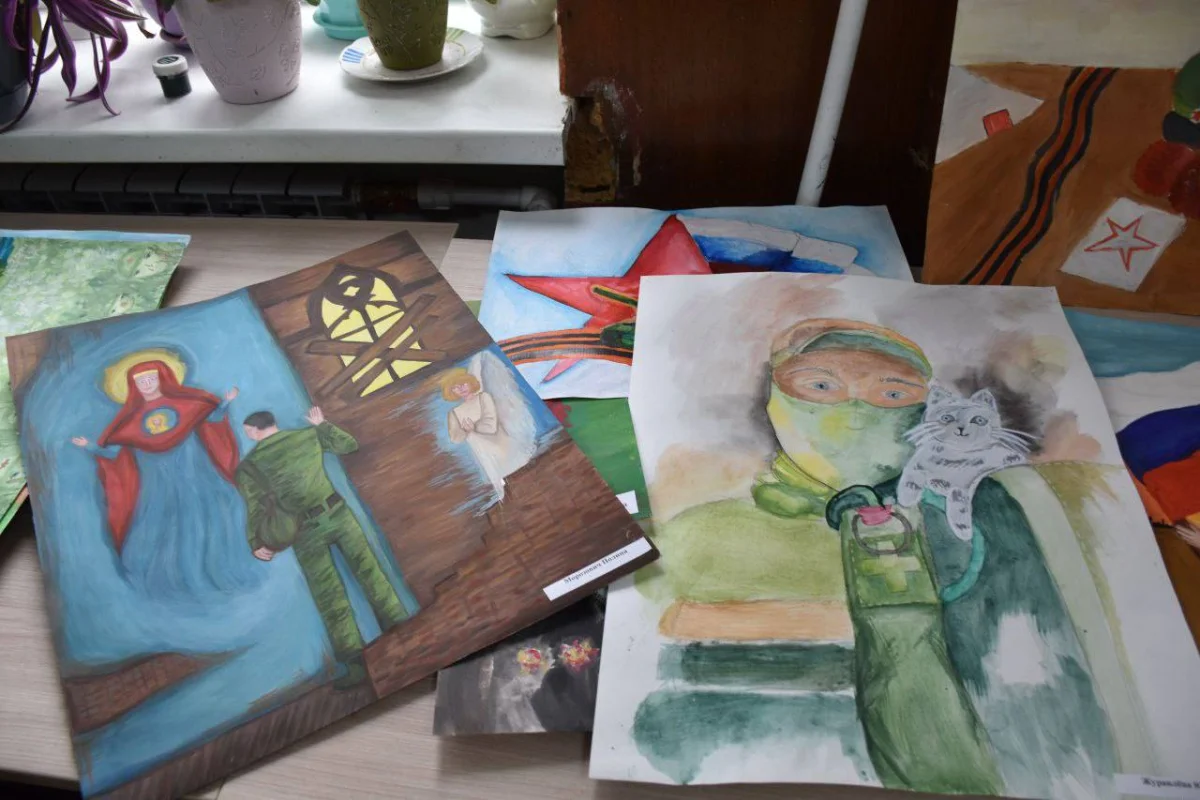 Ребята нарисовали целую серию картин, посвященных защитникам Родины и памяти предков. Пятнадцать лучших работ передали официальному представителю региона-шефа Михаилу Климову, и теперь они отправятся в Калугу.