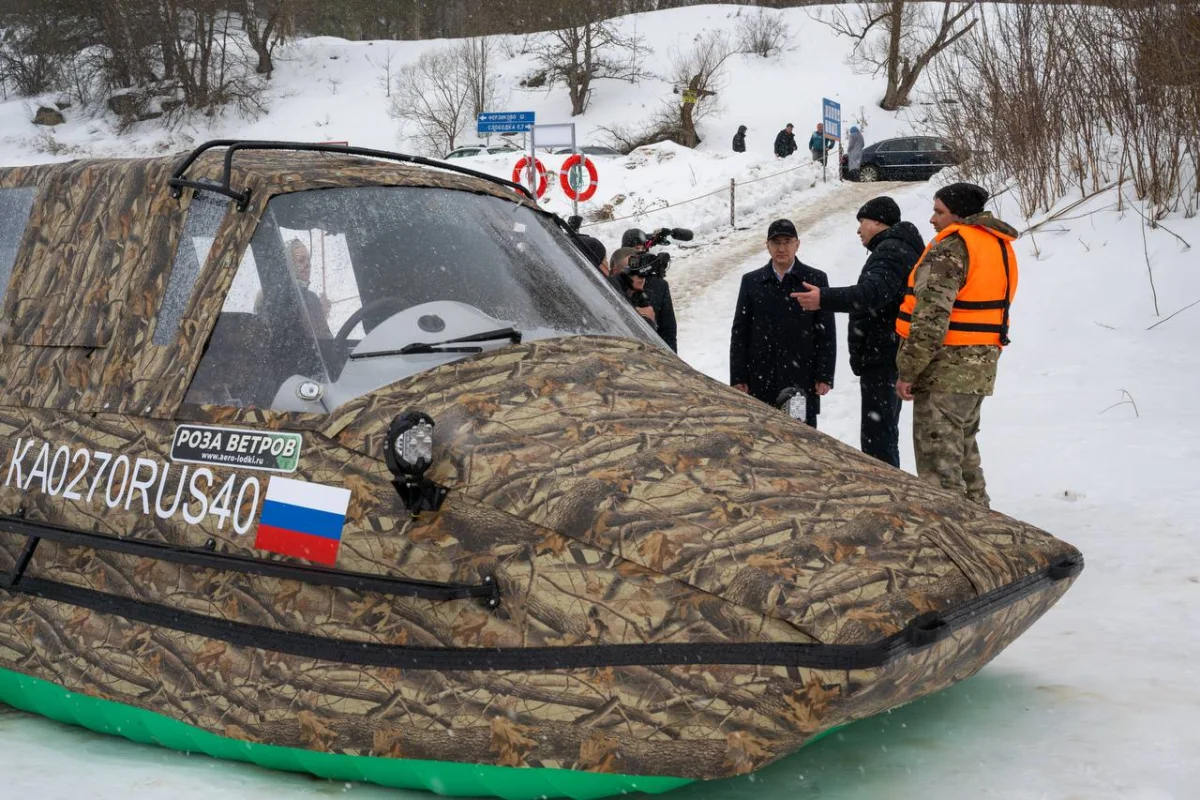Недавно там через Оку людей начали перевозить на аэролодке.